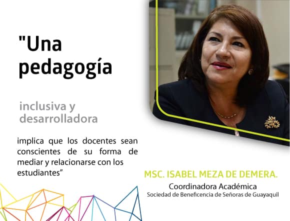 MSC. Isabel Mariana Meza de Demera «Una pedagogía inclusiva y desarrolladora implica que los docentes sean conscientes de su forma de mediar y relacionarse con los estudiantes”. Usted estudió en la Unidad Educativa “Matilde Amador Santistevan”, ¿no es …